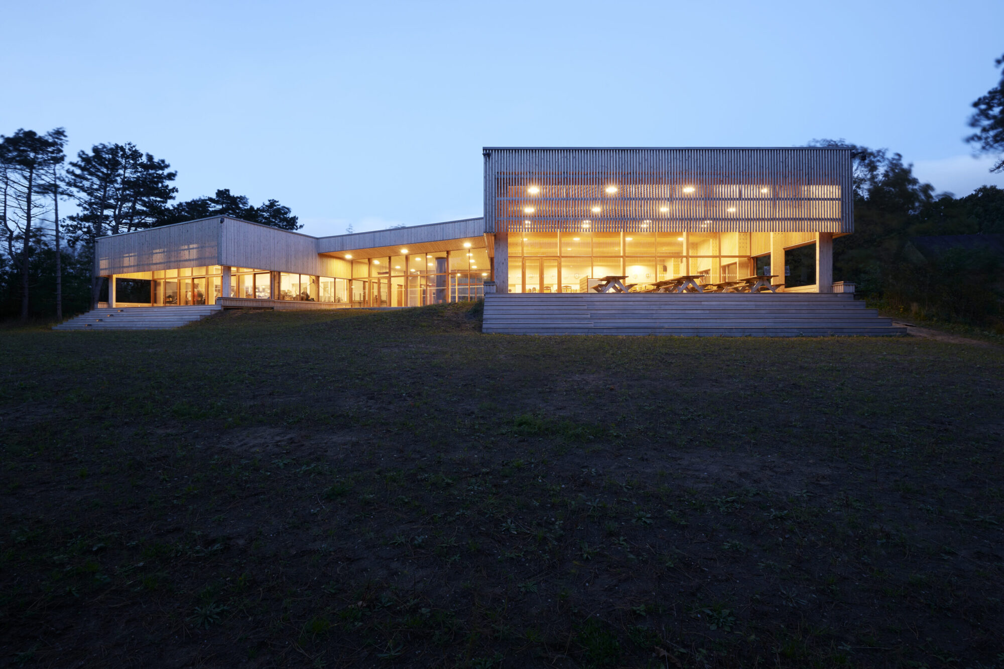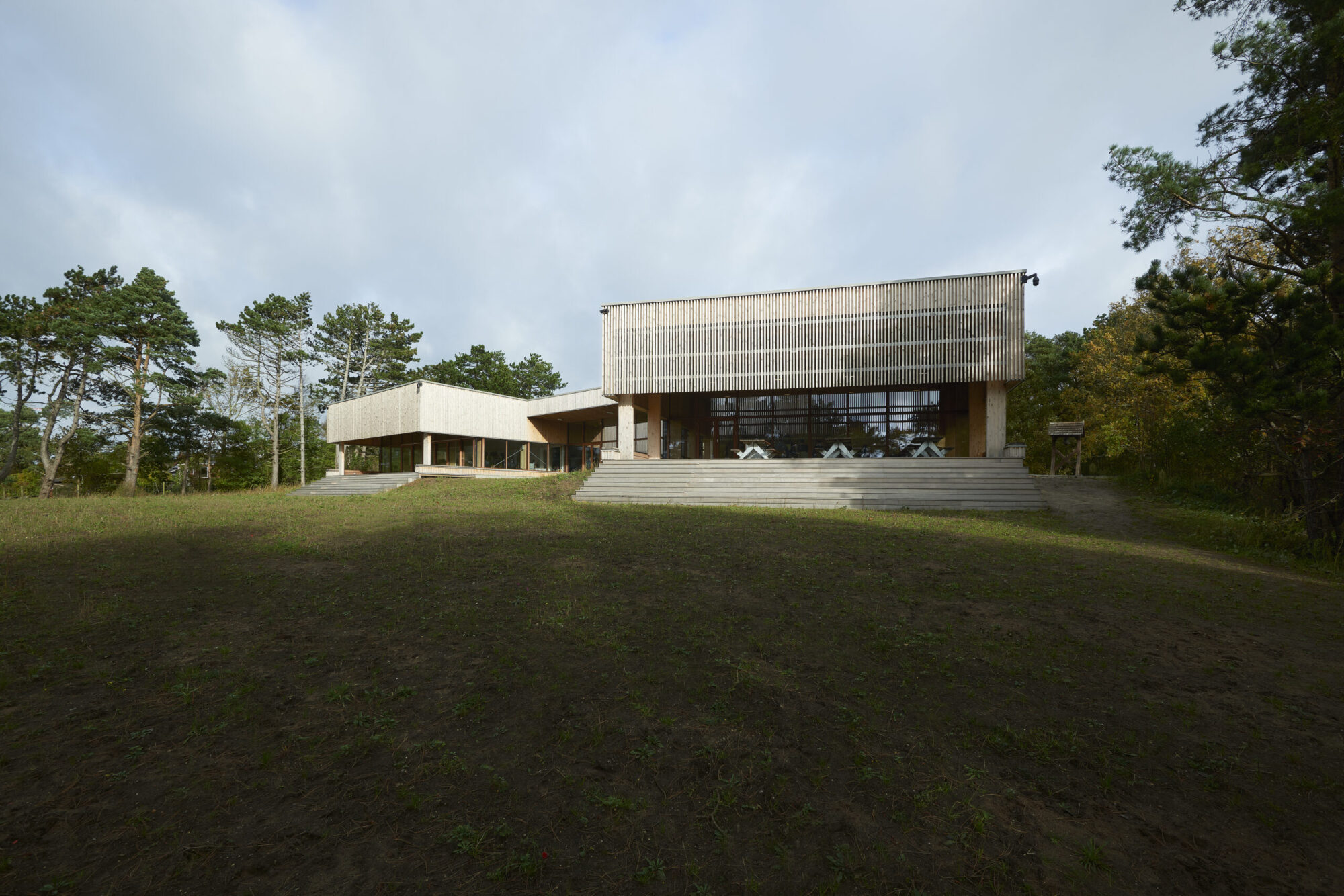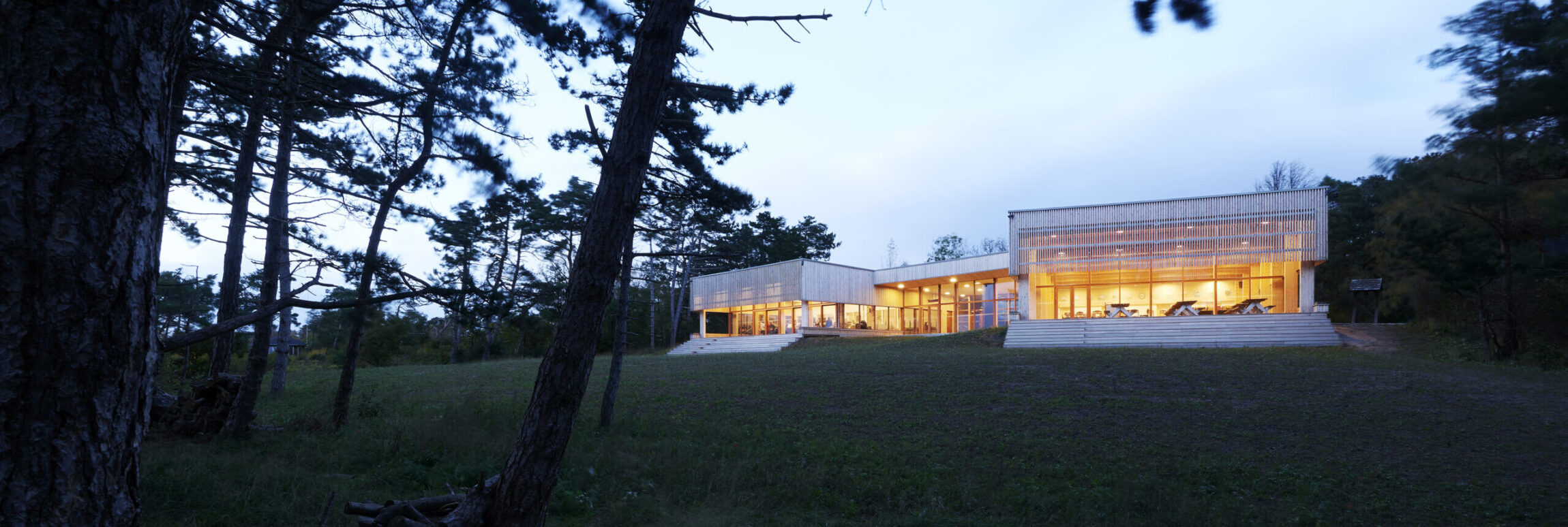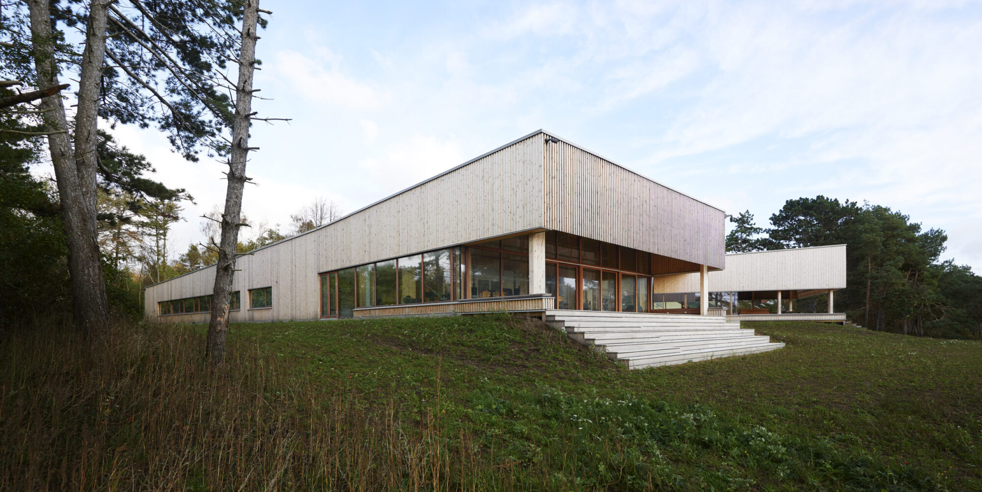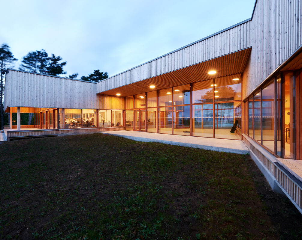 Derfor var vores første tanke, at enorme vinduespartier i den nye hovedbygning var det oplagte valg, så man stadigvæk kan suge hele naturen til sig, selvom man sidder indenfor.